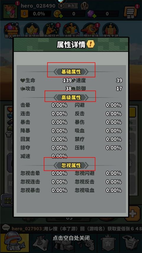2、玩家可以查看自己的基础属性、高级属性和忽视属性等详细信息。