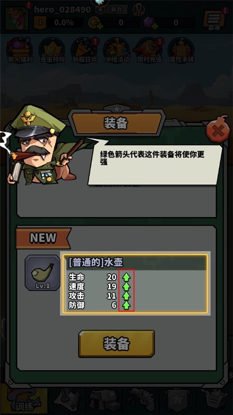 1、在游戏中,绿色箭头标识的装备将使你变得更强。