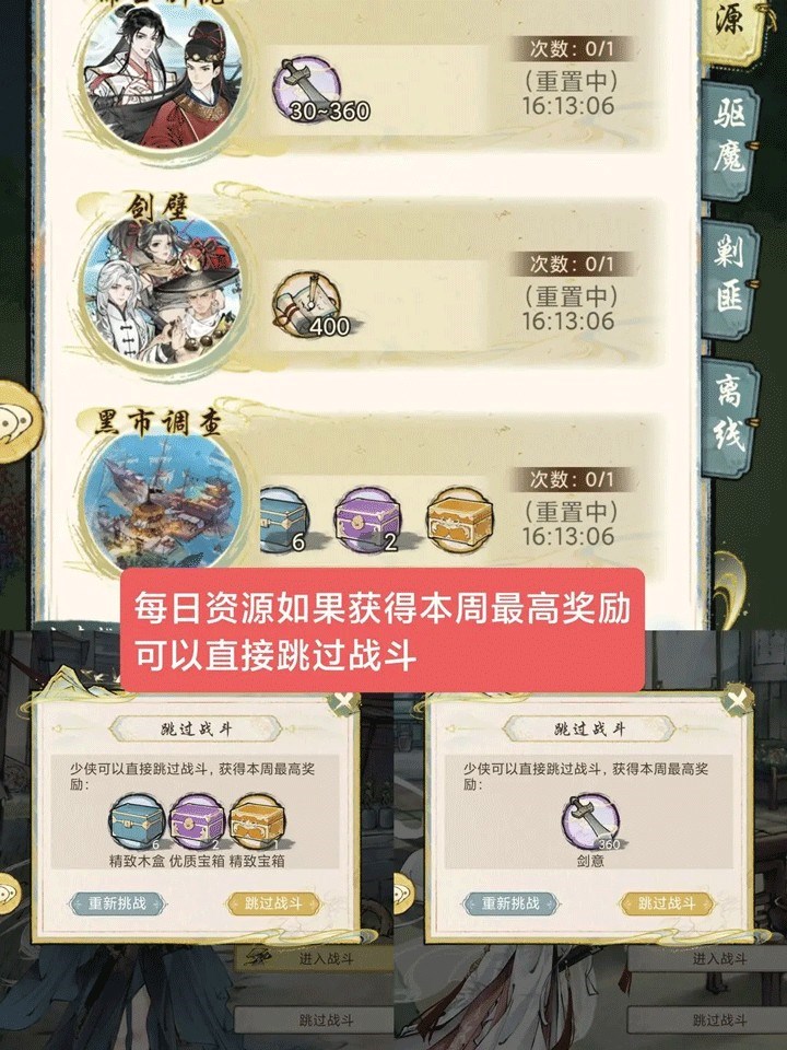 如果一周内完成每日资源本的挑战,可以跳过部分任务。
