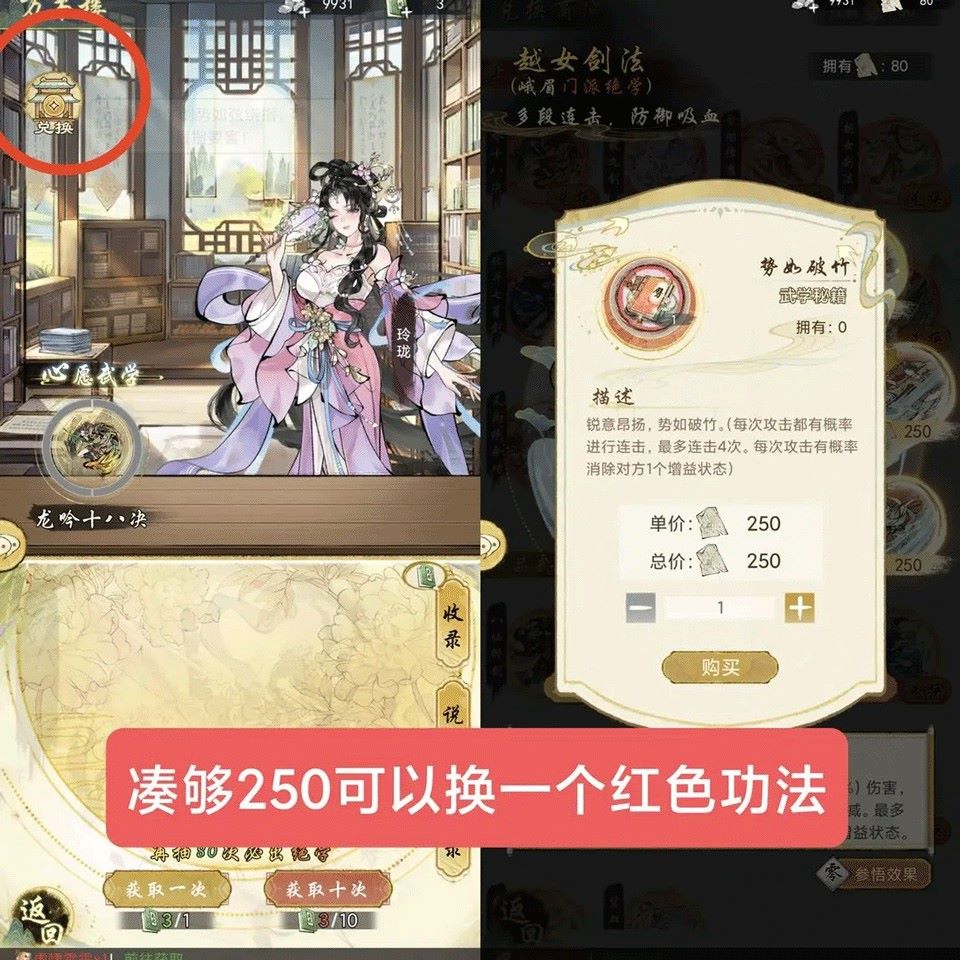后期抽取功法和武器后,可以使用材料兑换相关的装备。