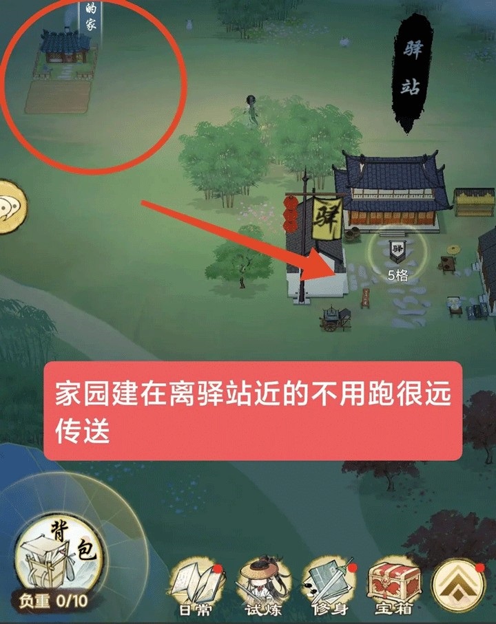 建议将家园建在驿站旁边,方便快速回家并进行传送。